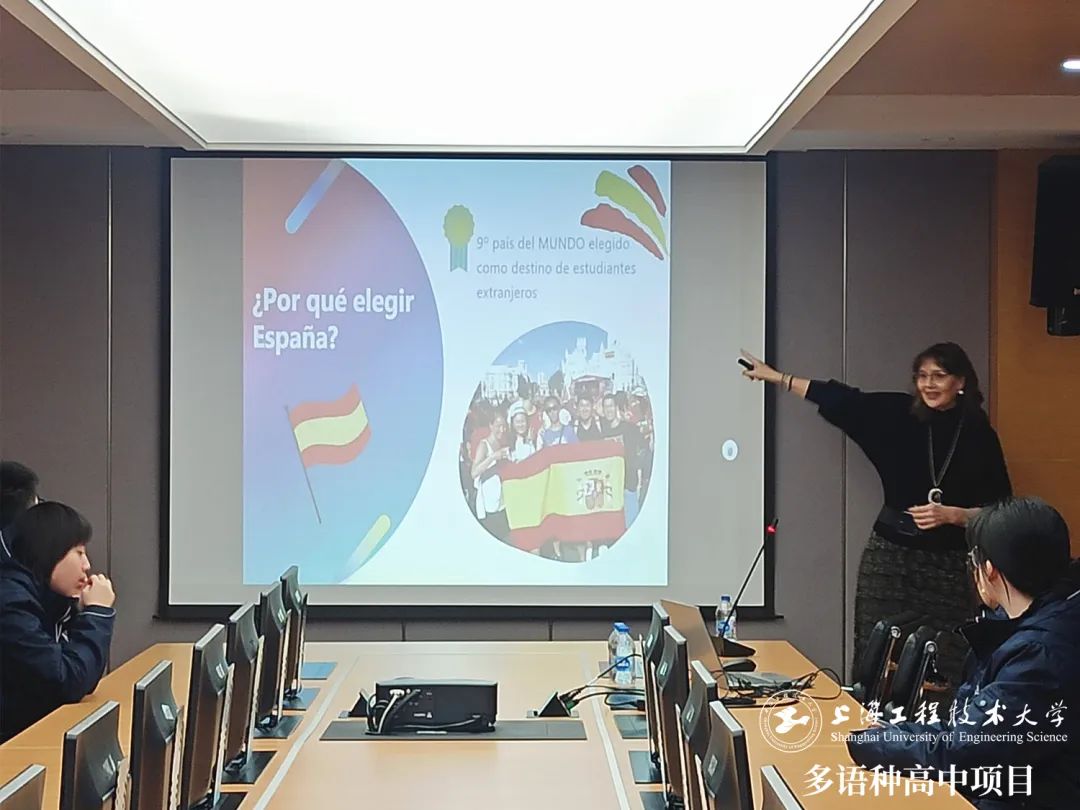 12月4日上午,西班牙公立卡斯蒂利亞拉曼查大學國際合作處主管及中國學生項目負責人Gloria Jordán Giménez女士來到上海工程大多語種高中項目,為西班牙語班學生做大學介紹并進行現場交流。