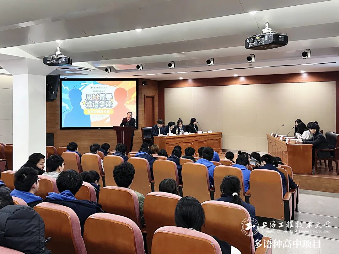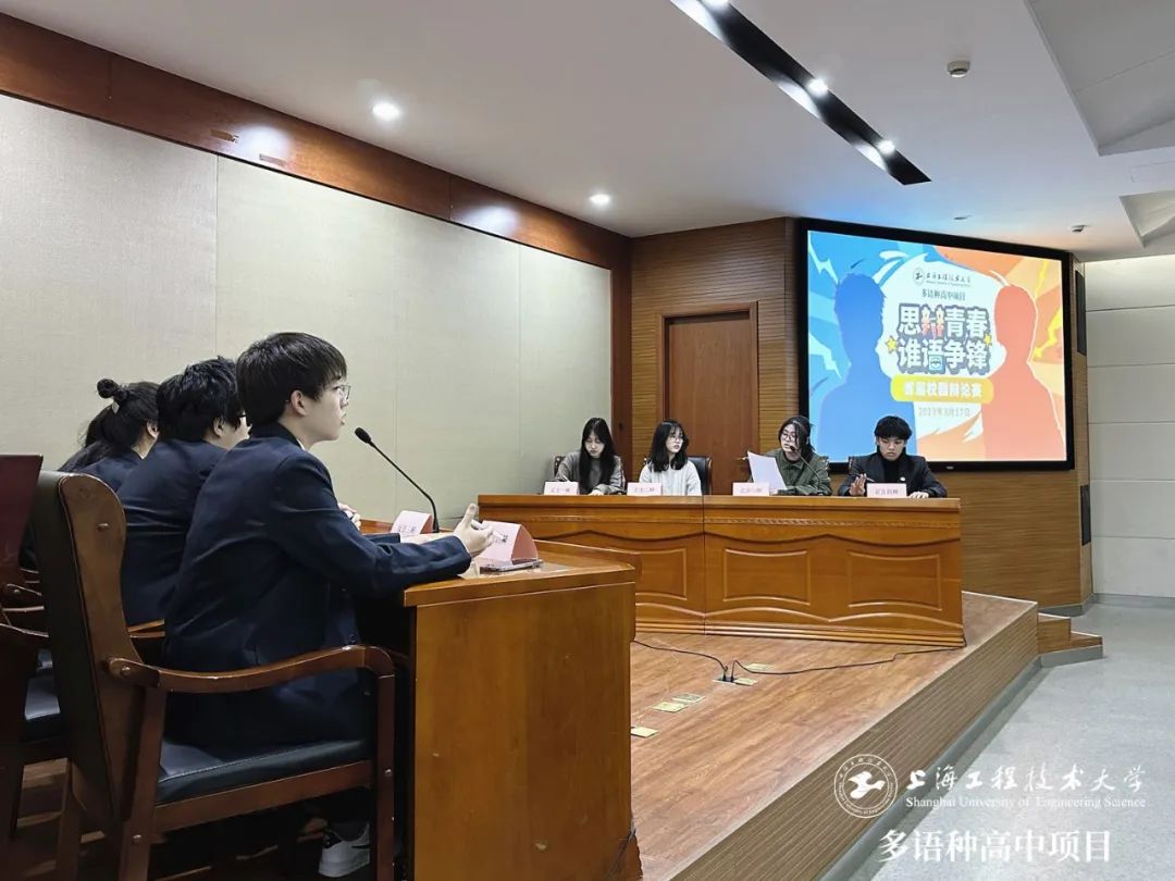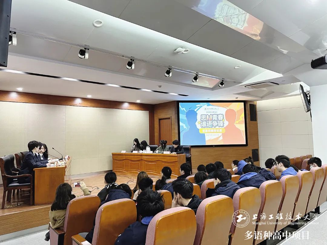 3月17日,上海工程大多語種高中項(xiàng)目首屆校園辯論賽在教學(xué)樓一樓禮堂隆重舉行。