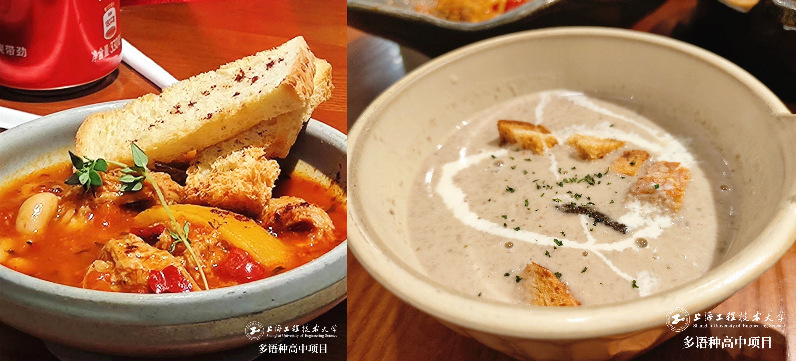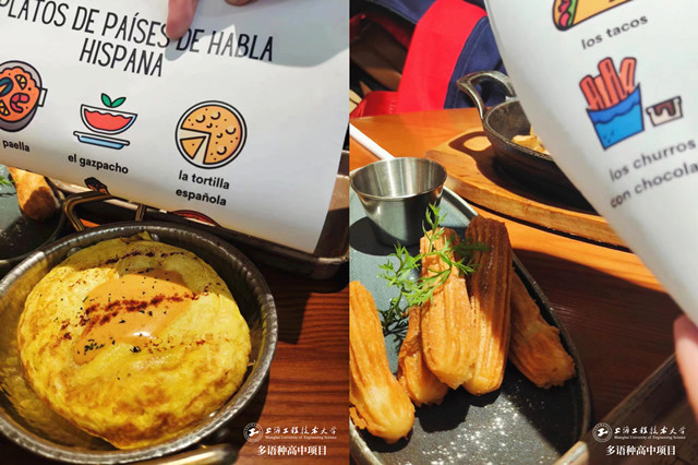 在徐家匯西班牙餐廳,師生們開展了一堂“色香味俱全”的餐飲用語課。