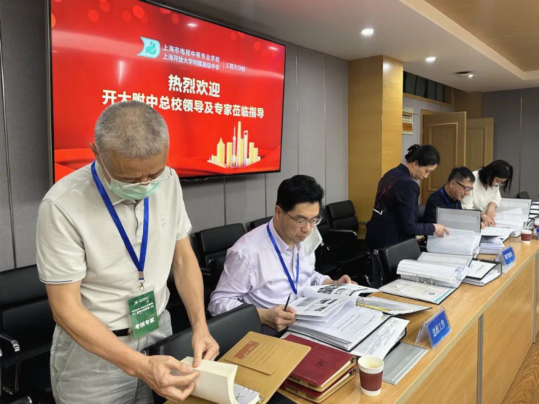 10月16日(周一)下午,上海開放大學附屬高級中學總校領導及分??己藢<医M成員一行共6人蒞臨工程大分校開展年度考核和辦學檢查工作。上海工程技術大學繼續教育學院院長謝敏、副院長吳剛及參與工程大分校日常管理工作的老師們一同參與接待。