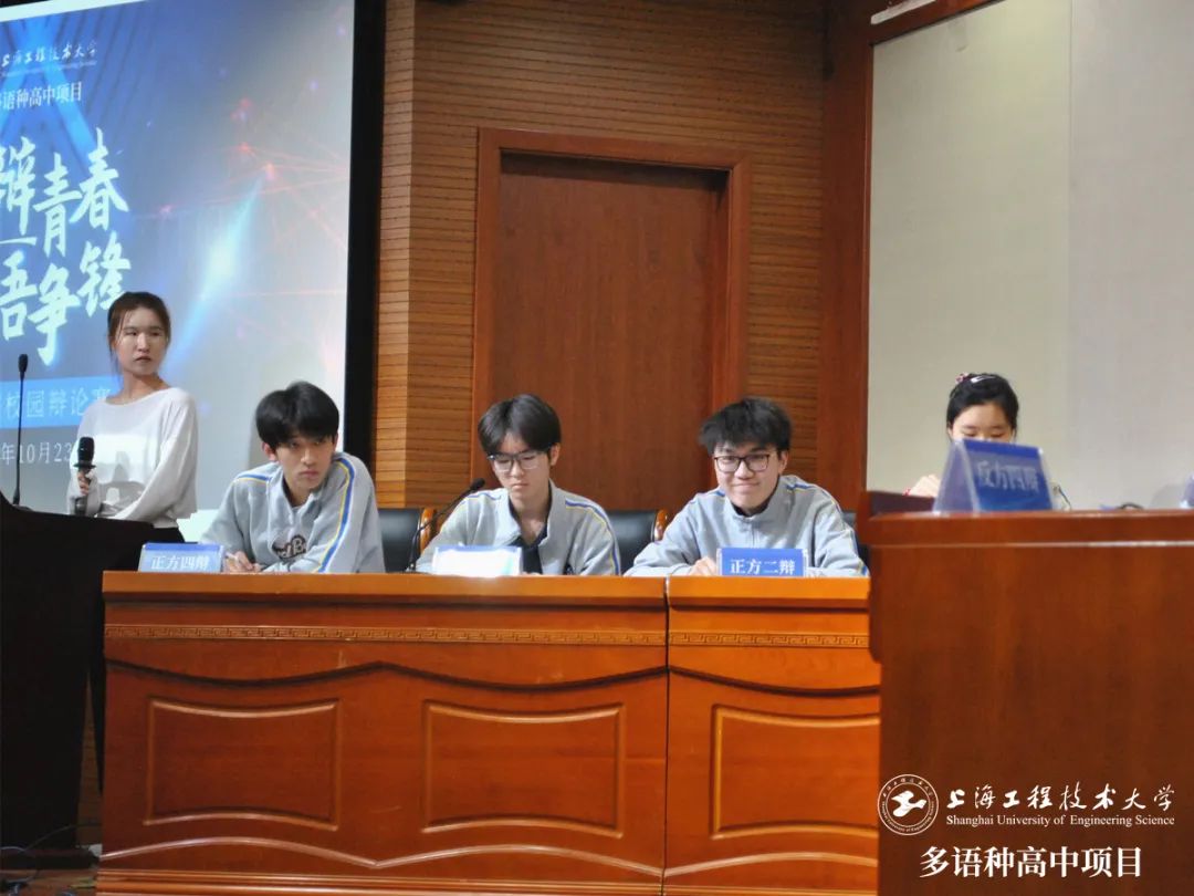 金秋十月的校園,丹桂飄香。在學(xué)校的多功能會(huì)議廳里,上海工程技術(shù)大學(xué)多語(yǔ)種高中項(xiàng)目的同學(xué)們唇槍舌劍,激戰(zhàn)正酣。多語(yǔ)種高中的第二屆校園辯論大賽于10月23日下午正式拉開(kāi)帷幕。