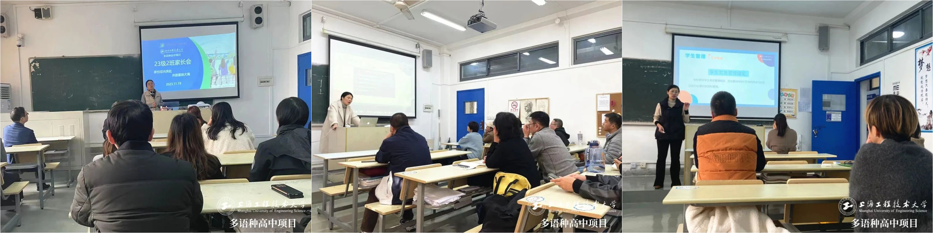 班主任介紹結束后,日語、西語等學科授課教師及升學指導老師分組介紹各班學情現狀、外語國際等級考試要求和考試報名規劃,及課外語言文化活動和暑期海外研學等方面的情況。