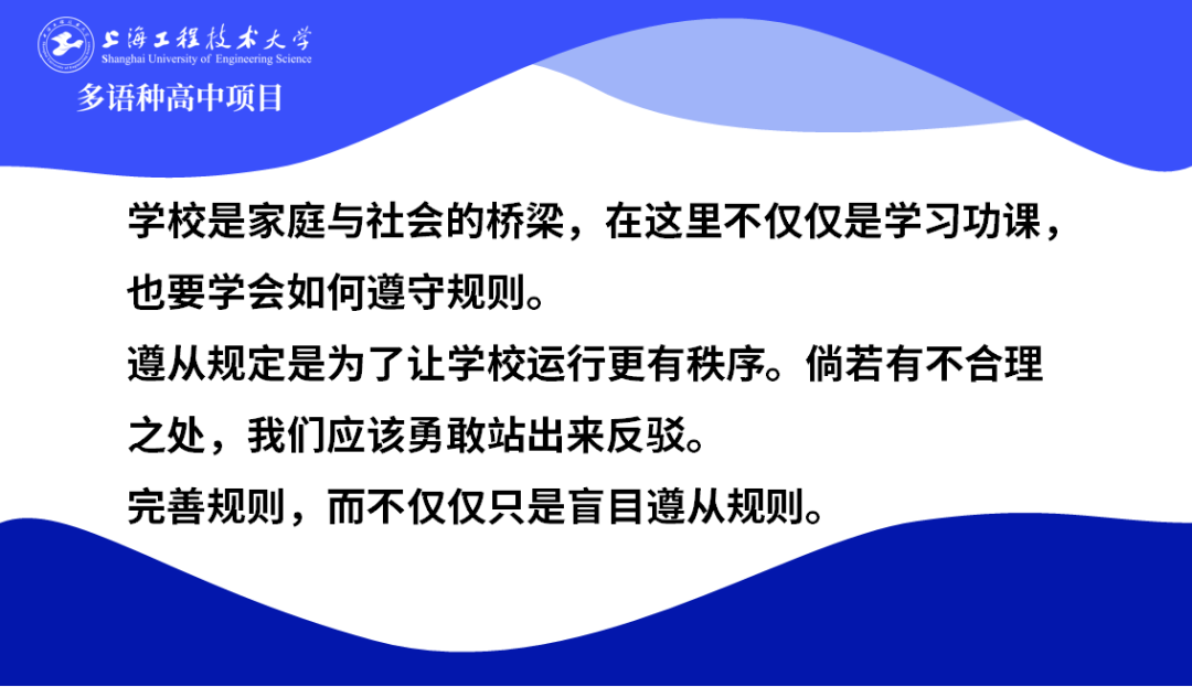 3月15日下午,在上海工程大多語種高中項目24級春季班的綜合素養課上,由葉宇宏老師帶領同學們開展了一場有關“自由與規則”的深入探討。