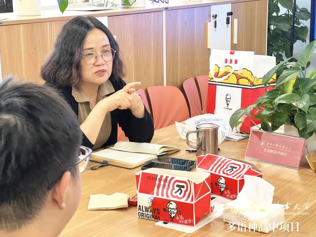 導(dǎo)師面談過(guò)程中,錢老師不僅了解了同學(xué)們的學(xué)習(xí)狀況,也具體詢問(wèn)了寢室生活、人際交往等高中生活的方方面面,錢老師對(duì)同學(xué)們的期待不僅僅是學(xué)習(xí)成績(jī)的提升,更多是希望同學(xué)們?cè)诙嗾Z(yǔ)種高中項(xiàng)目的三年中能形成多種的興趣愛(ài)好、健全的人格、實(shí)現(xiàn)綜合素養(yǎng)的提升。