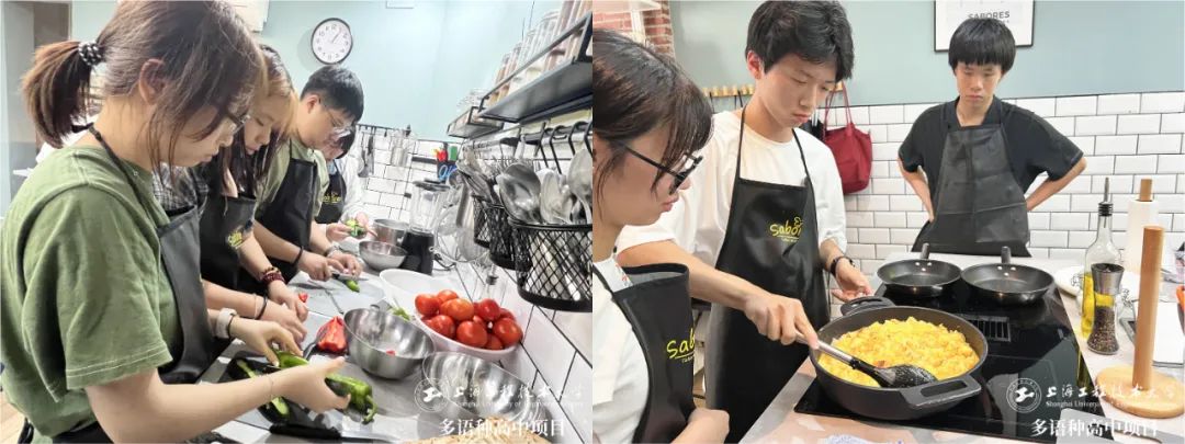 隨后,大家來到手工廚房化身為自己的午餐大廚:在專業(yè)廚師的指導(dǎo)帶領(lǐng)下開始制作tapas,在下廚的過程中也跟著我們的廚師學(xué)習(xí)了西語單詞。