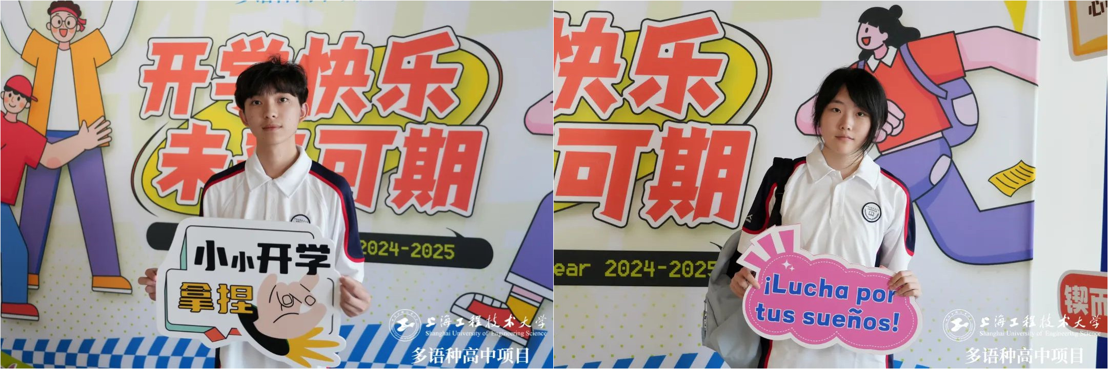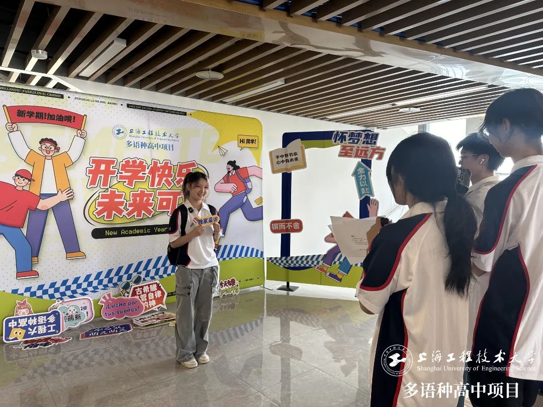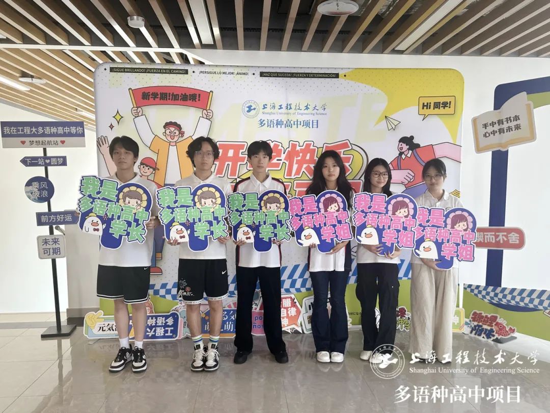 隨著九月的秋風輕拂,上海工程技術大學多語種高中項目迎來了新一屆的學子。當清晨的陽光灑進校園,學長們已經面帶微笑,手持歡迎牌,在大門口迎接新生的到來。一句句“歡迎來到多語種高中”,不僅是對新生的問候,更飽含對新生未來學習生活的美好祝愿。從晨光初現到夜幕降臨,每一位同學都度過了忙碌又充實的高中第一天。