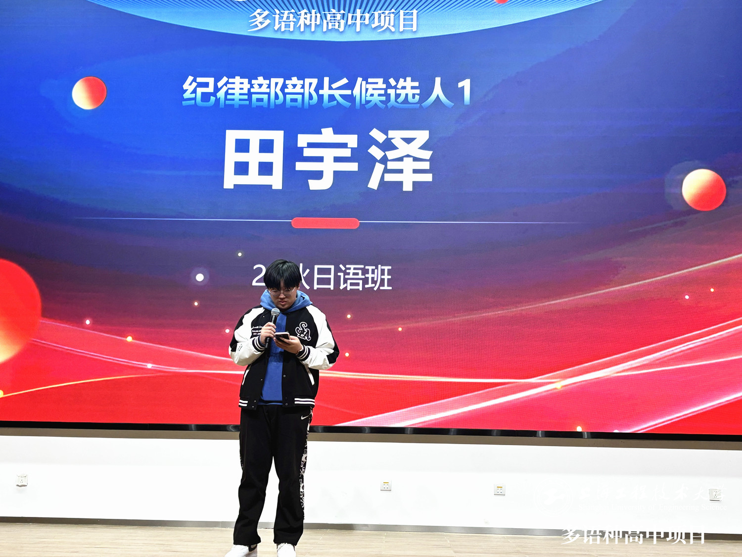 2024年11月28日,上海工程技術(shù)大學(xué)多語(yǔ)種高中項(xiàng)目完成了首次學(xué)生會(huì)換屆與第二屆學(xué)生會(huì)選舉盛會(huì)。這不僅是一場(chǎng)才華與勇氣的角逐,更是一場(chǎng)青春與夢(mèng)想的璀璨綻放。競(jìng)選者們以滿腔熱情,展現(xiàn)自我,為青春的舞臺(tái)增添無(wú)限光彩。