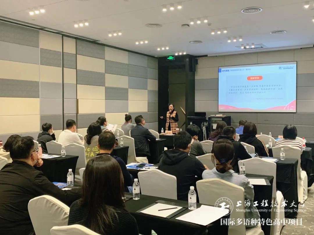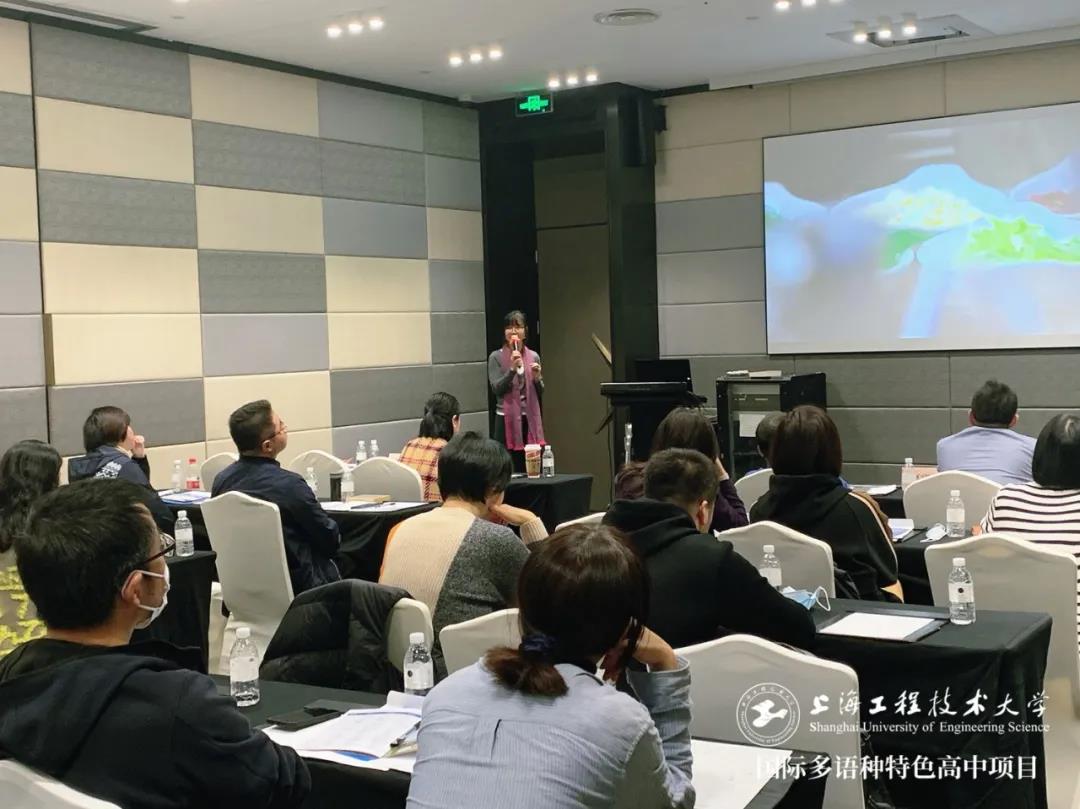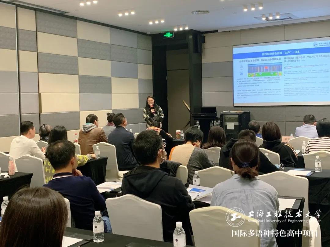 ▲ 葉老師介紹國際多語種高中課程教育理念和課程體系