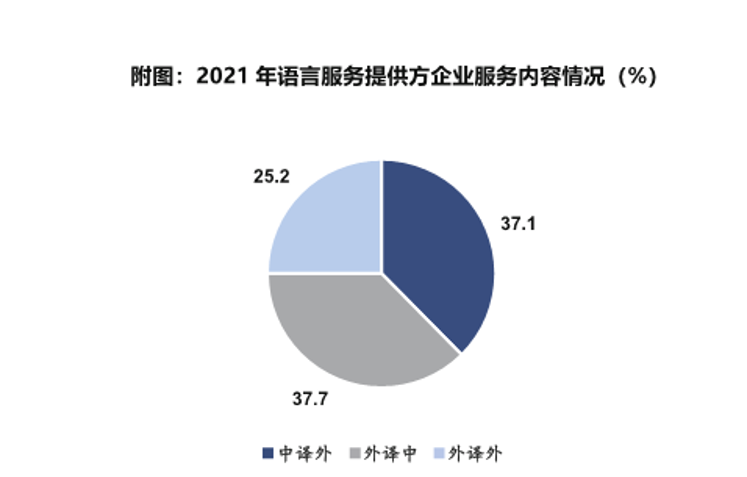 “中譯外”和“外譯中”服務內容在語言服務業務中分別占37.1%和37.7%,“外譯外”的業務占25.2%,相較前兩年提升了10%。