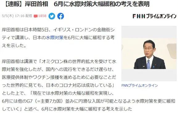 據(jù)日本媒體5日消息,岸田首相在英國(guó)倫敦的金融街發(fā)表演講時(shí)提到:將在6月大幅放寬日本的入境政策。