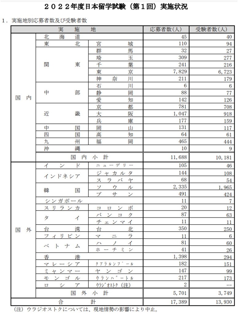 目前第一次考試已經結束了,第二次考試的報名也在7月29日截止。日本學生支援機構公布了2022年度第一次日本留學考試的實施結果。