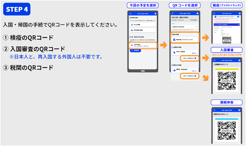 最后,在入境日本時向不同關卡的工作人員出示已經生成的不同類別的二維碼。(檢疫碼,入國審查碼,海關申報碼)以上就是入境日本時所需的最新手續(從11月1日開始)。