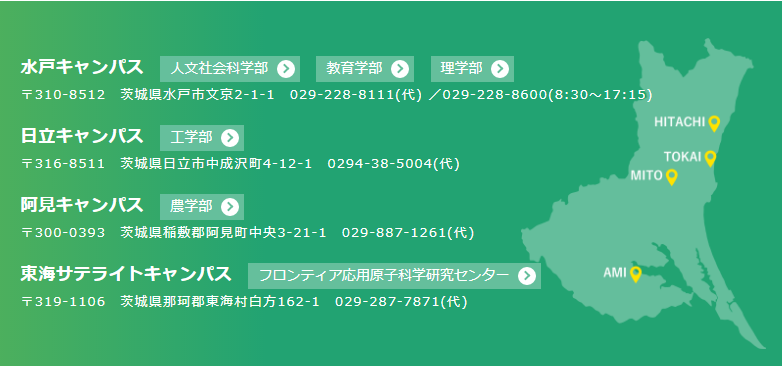 茨城大學設有水戸、日立、阿見和東海サテライト4個校區。