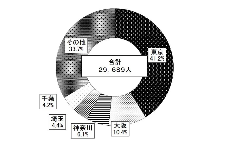 從就業(yè)地區(qū)來看,東京占比41.2%,再加上千葉4.2%、琦玉4.4%和神奈川6.1%,選擇在東京圈就業(yè)的占比達(dá)到了55.9%。大阪占比10.4%。