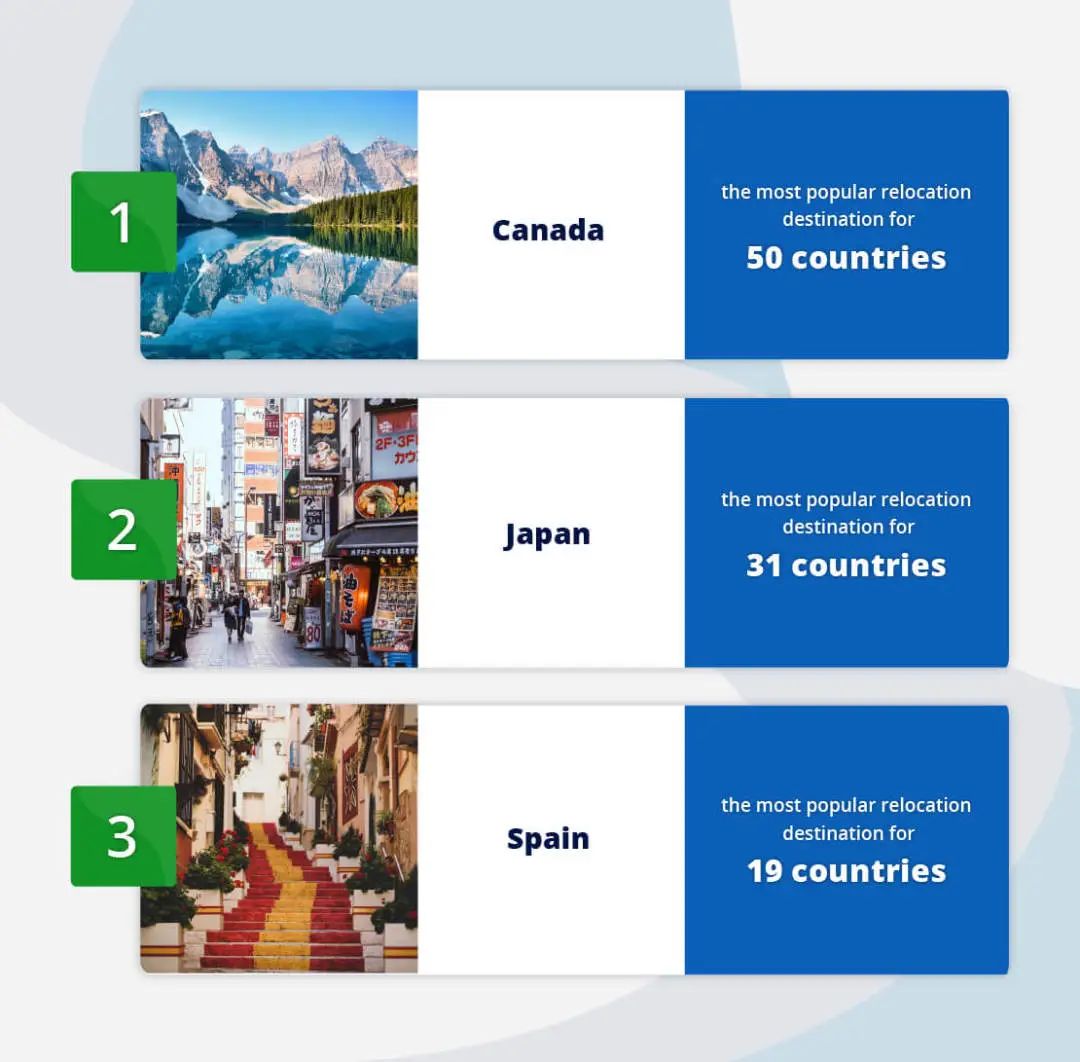 在最新的全世界最想移民國家排名中:日本和西班牙同樣取得了引人注目的好成績,日本排在第二名、西班牙全球第三!