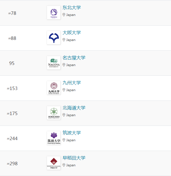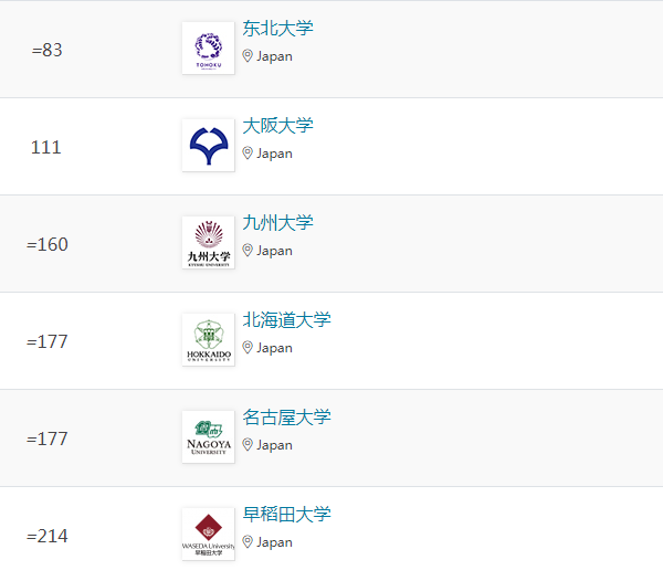 在本次排名中,日本大學(xué)在五大學(xué)科領(lǐng)域均有上榜Top100,以下是具體排名情況: