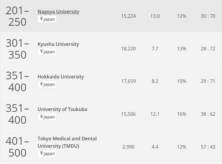 第六名:名古屋大學(No.201-250)