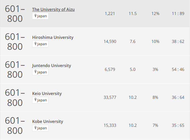 第11名:會津大學(No.601-800)