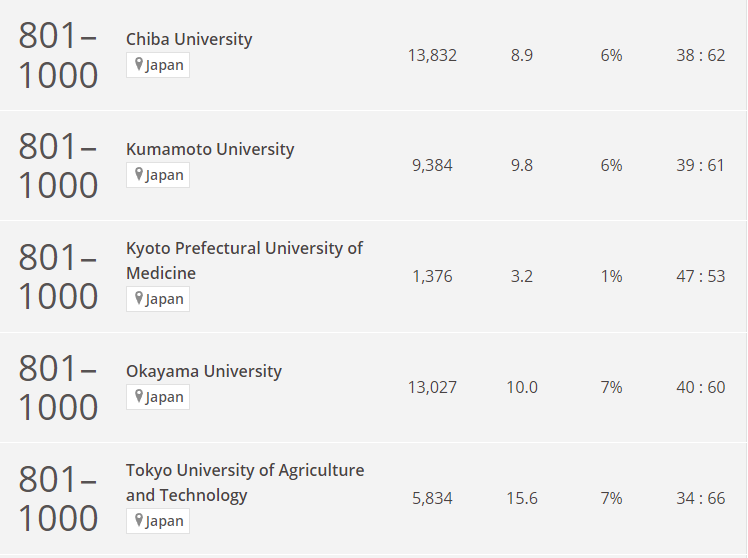 第19名:岡山大學(No.801-1000)