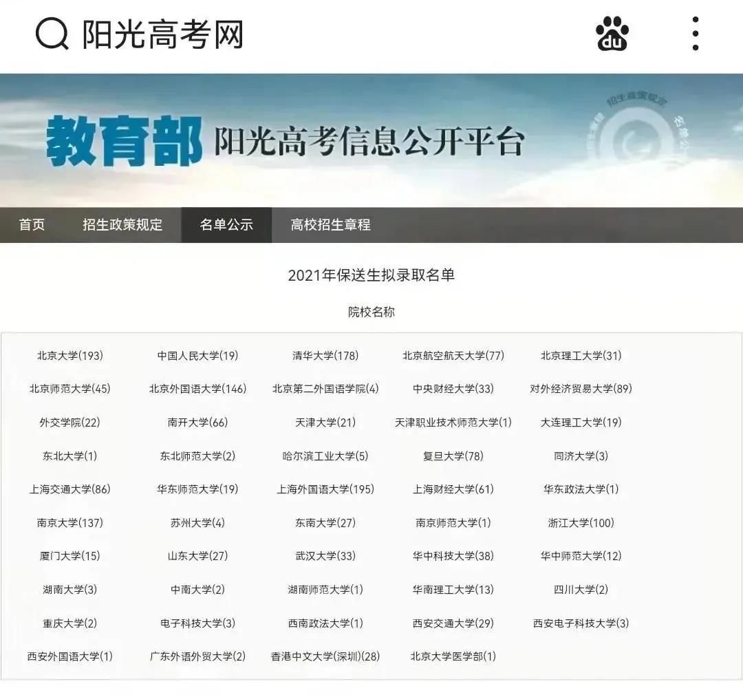 以2021保送錄取數據為例,我們可以在教育部官網查看今年各高校在全國招收外語類保送生情況: